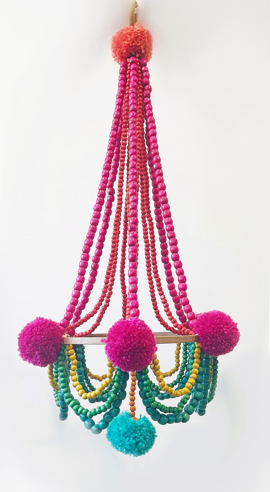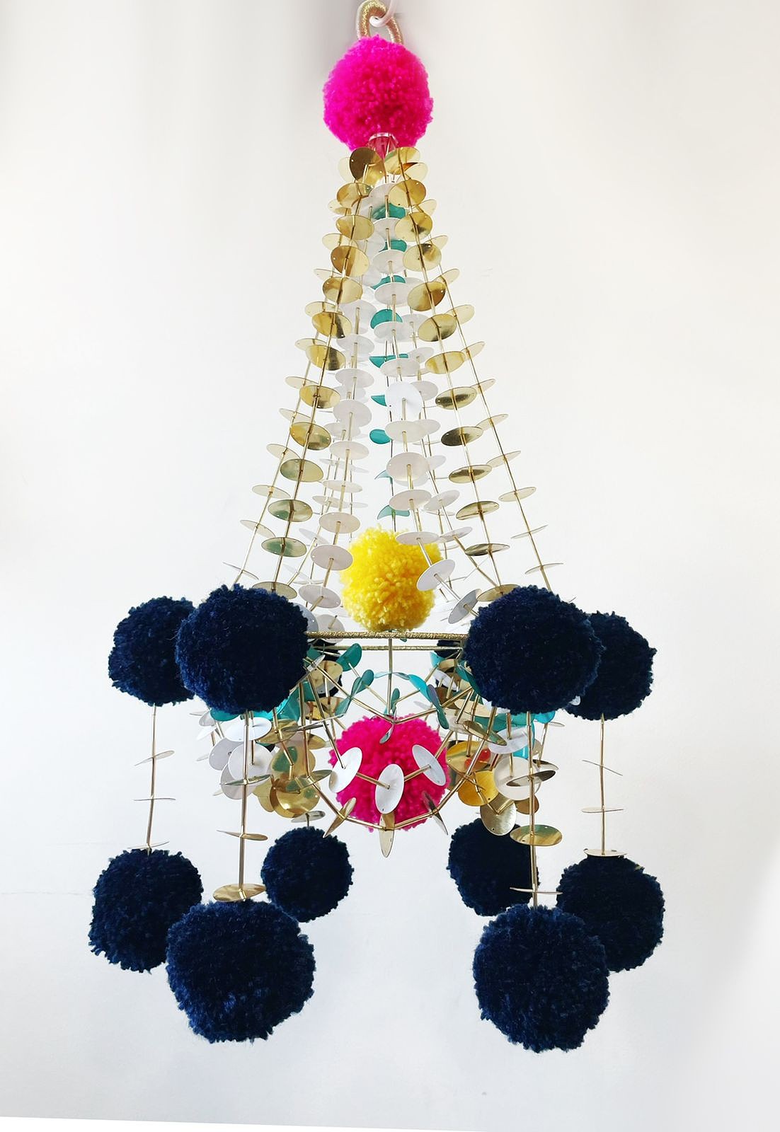 - Description:Wool pompoms, sequence & glass beads