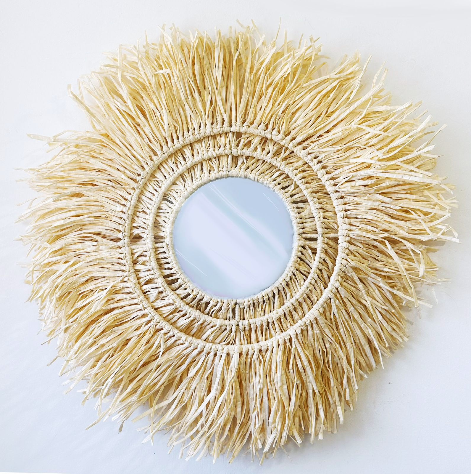 - Description:Paper raffia with metal rings & mirror