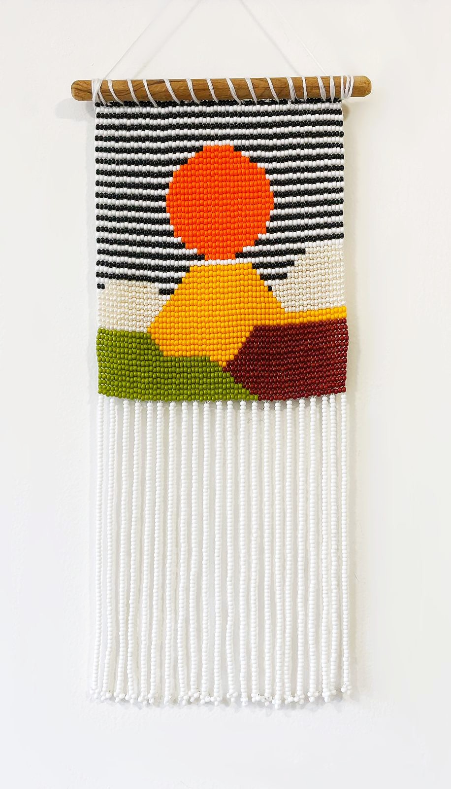 - Description:Seed Bead Wall Hanging with recycled glass bead fringes