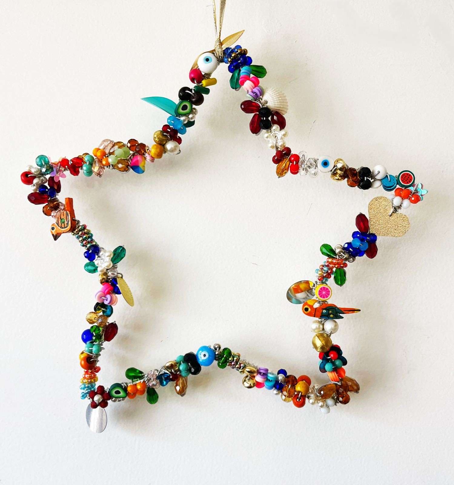 - Description:Assorted recycled beads with hand-painted MDF backing