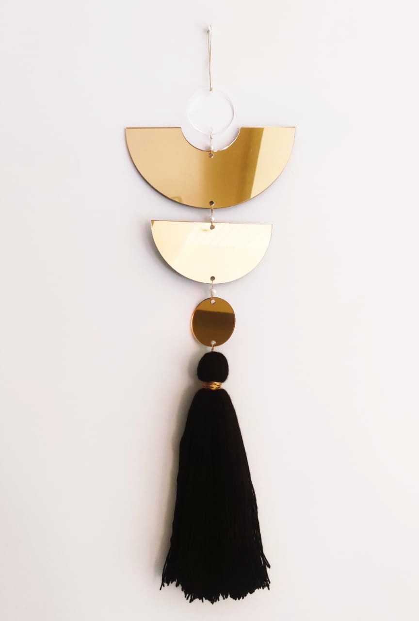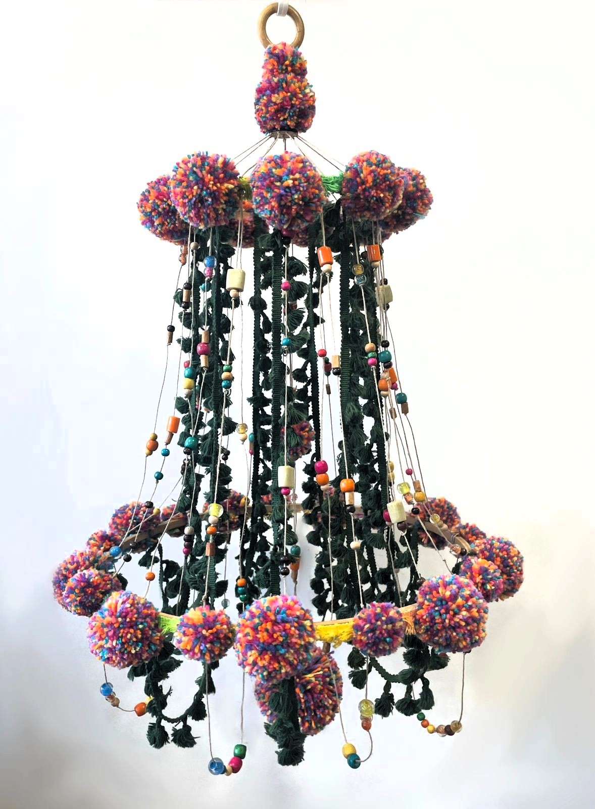 - Description: Wool wrapped ring with wool pompom, gotapatti, lurex tassels & wool/gold tassel pompom extensions