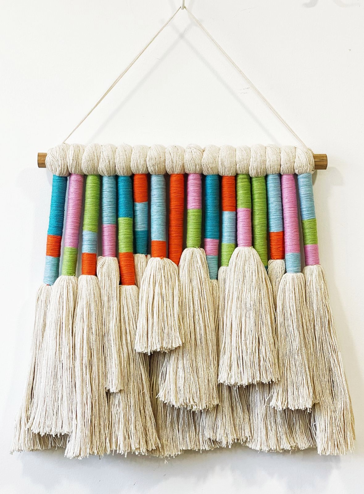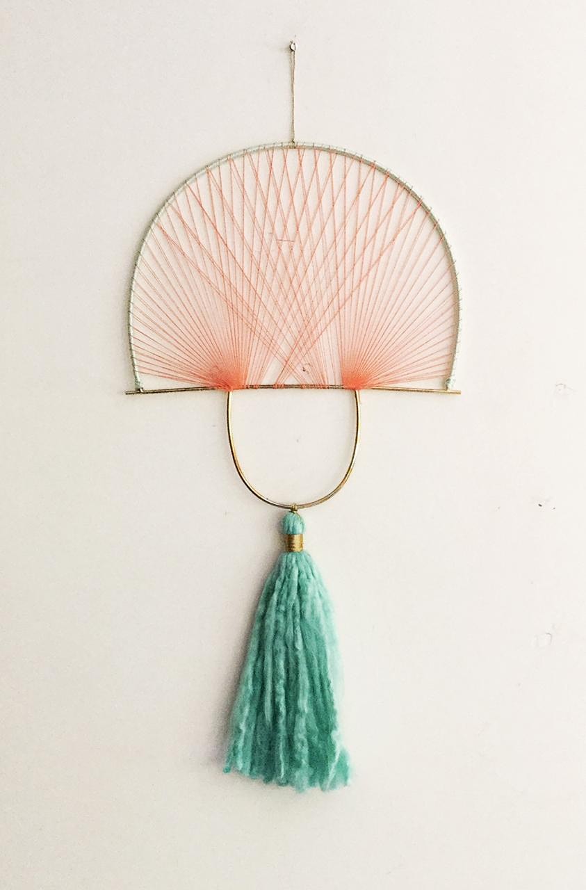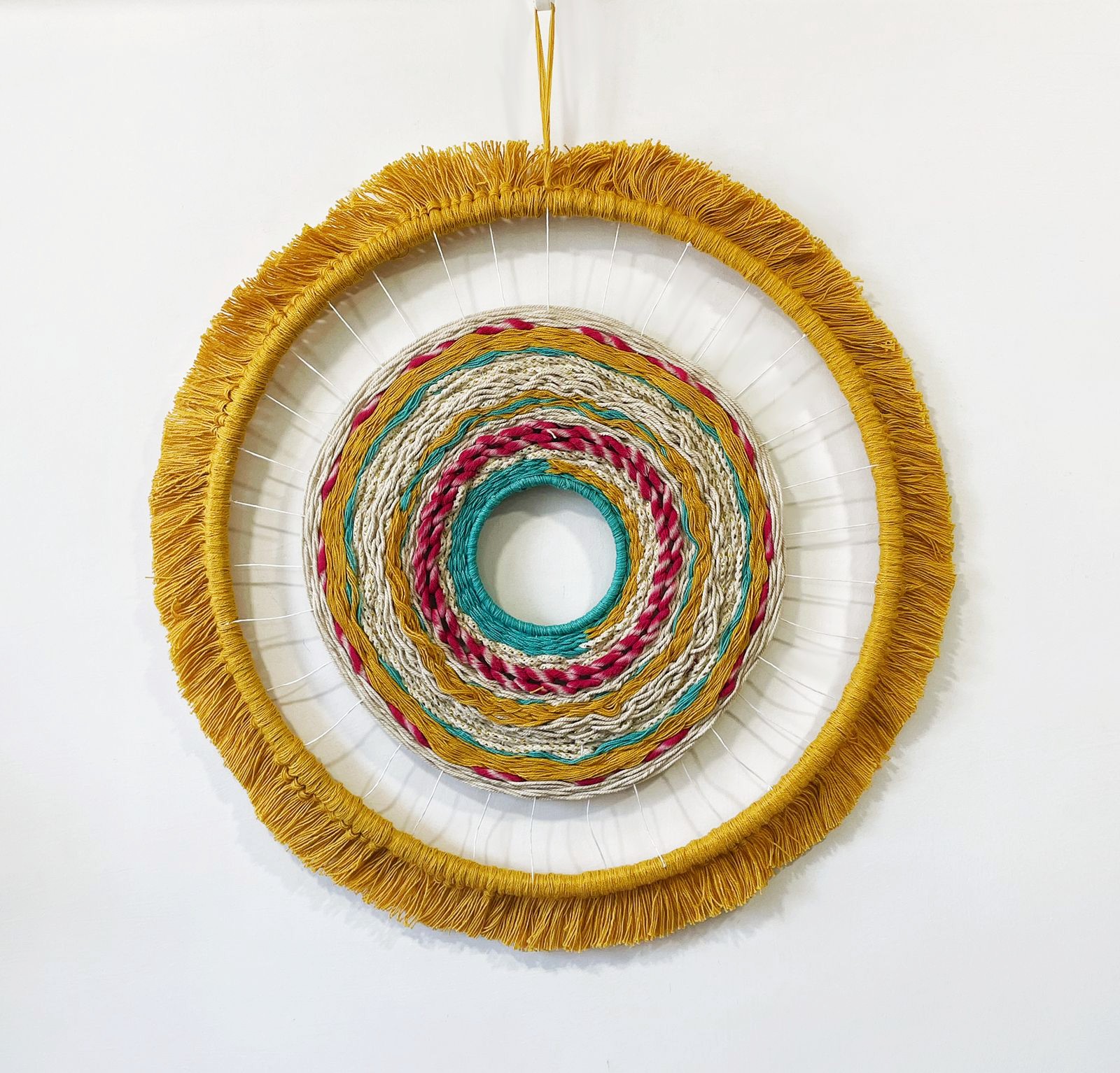 - Description:Cotton yarn in metal frame with chunky wool fringe