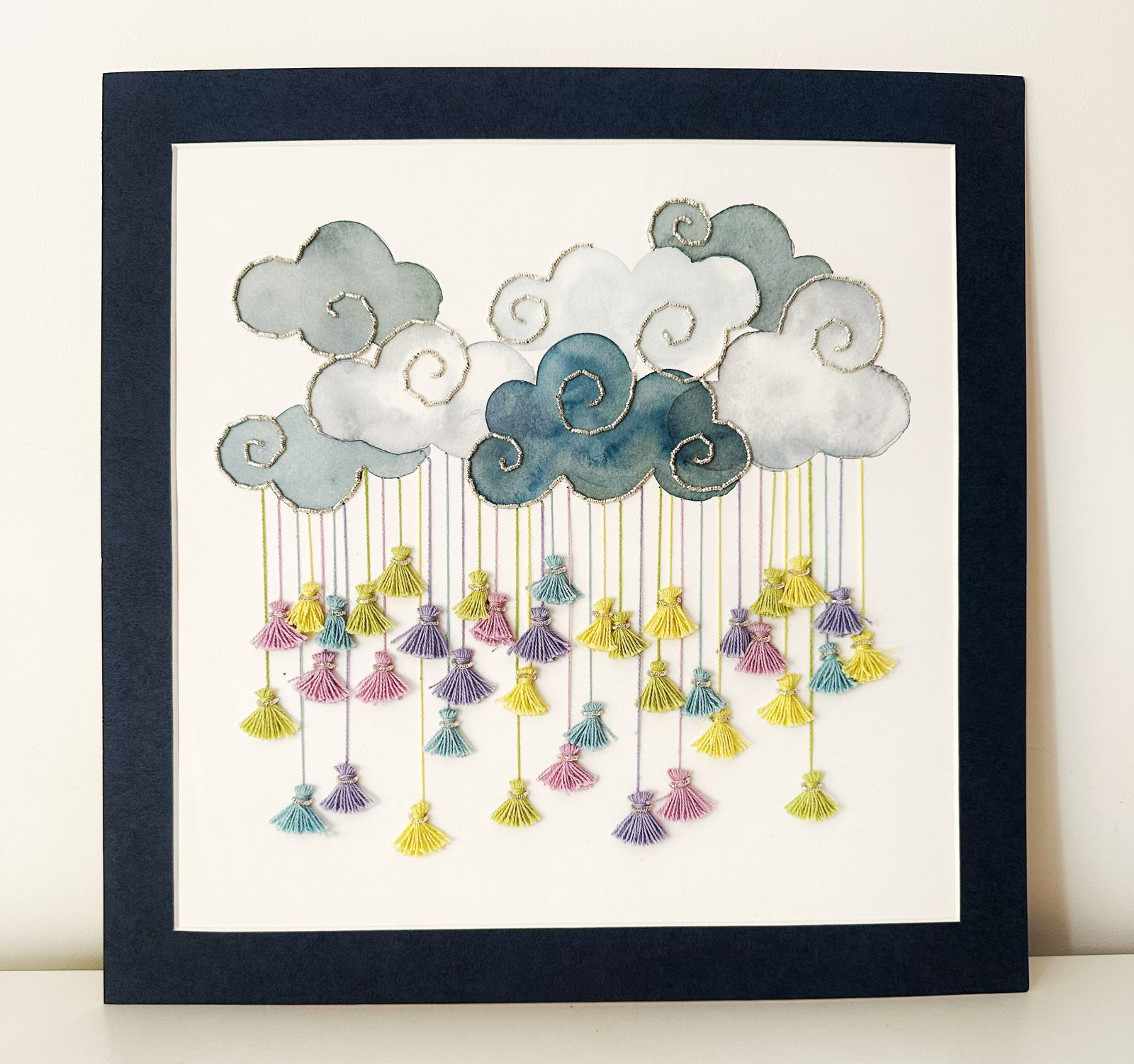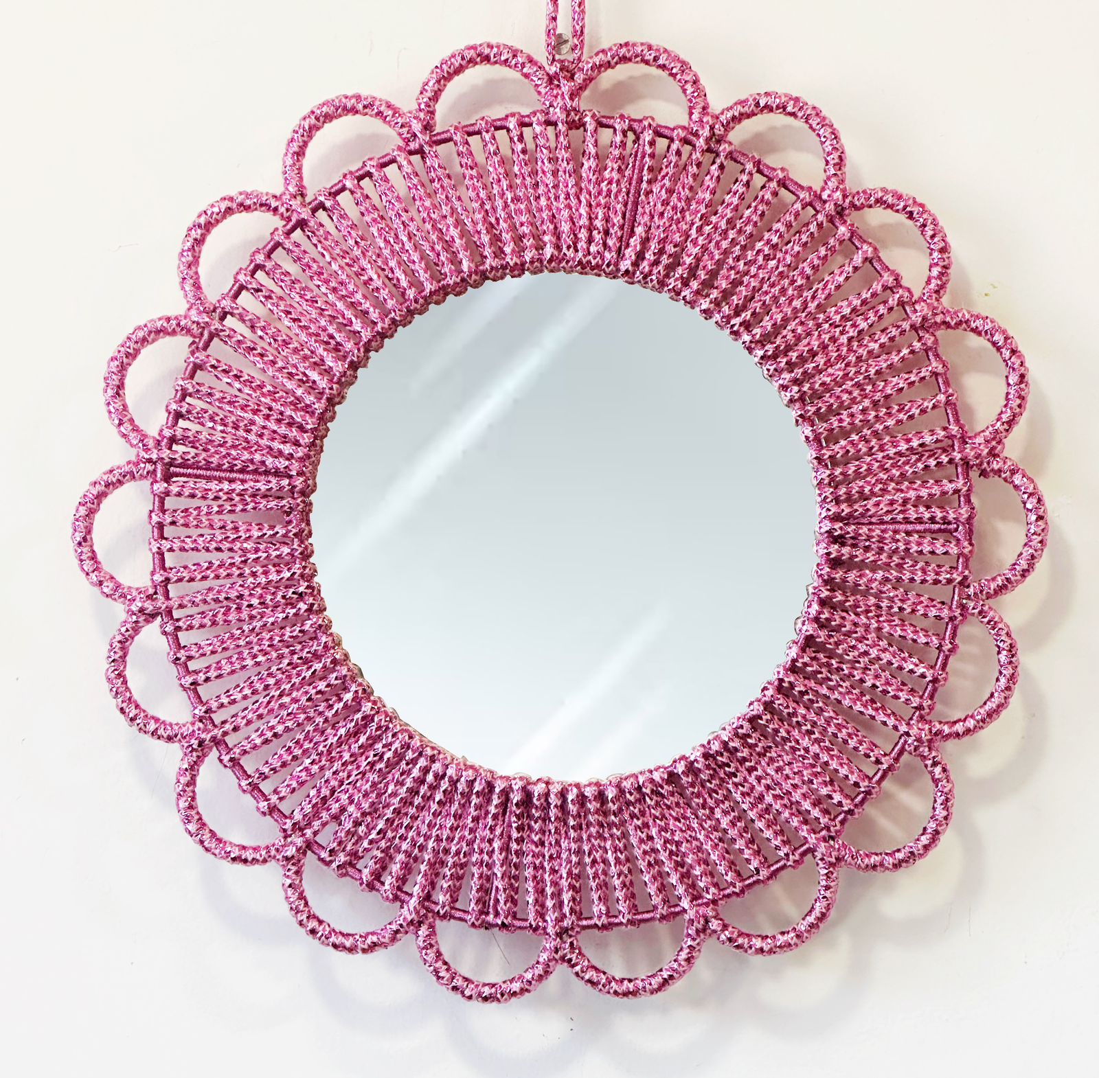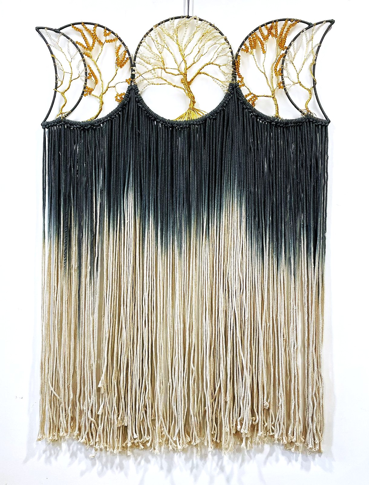 - Description:Cotton yarn in metal frame with chunky wool fringe