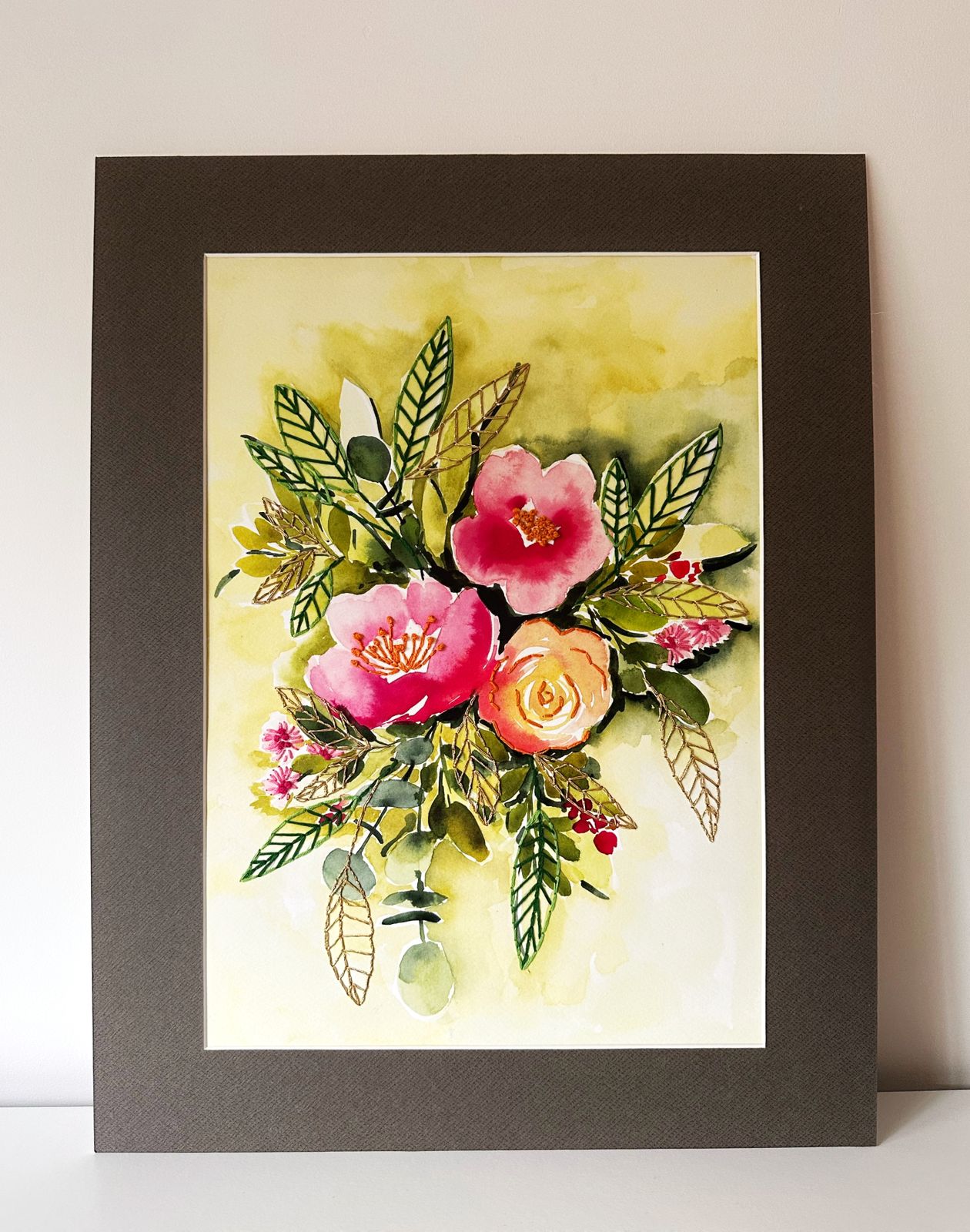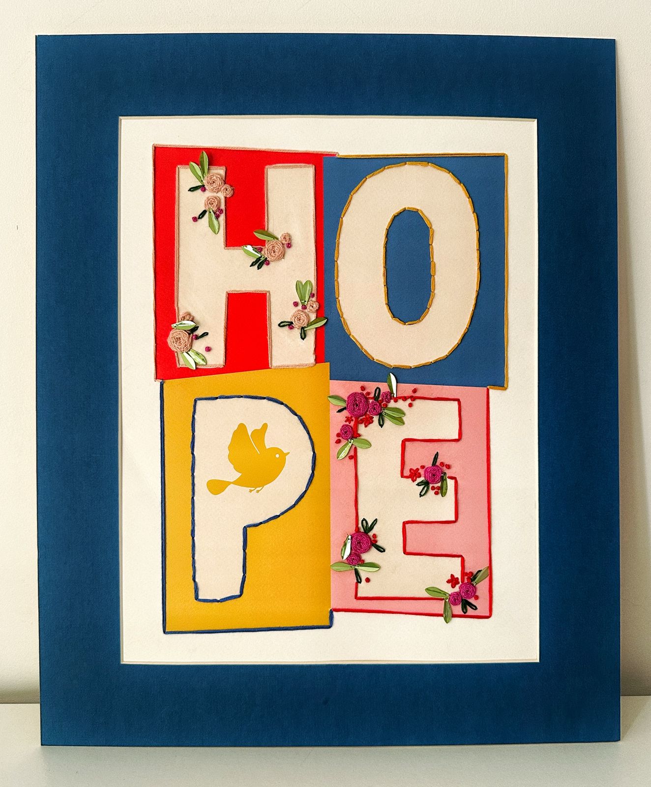 - Description:Printed Wall Art with faux flowers, beads & yarn embroidered