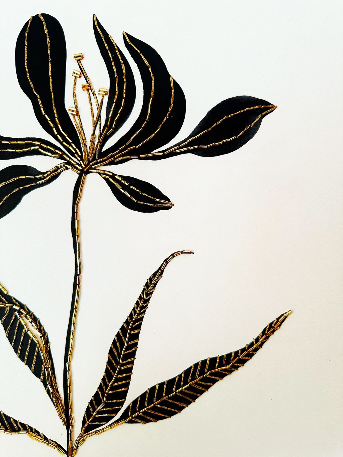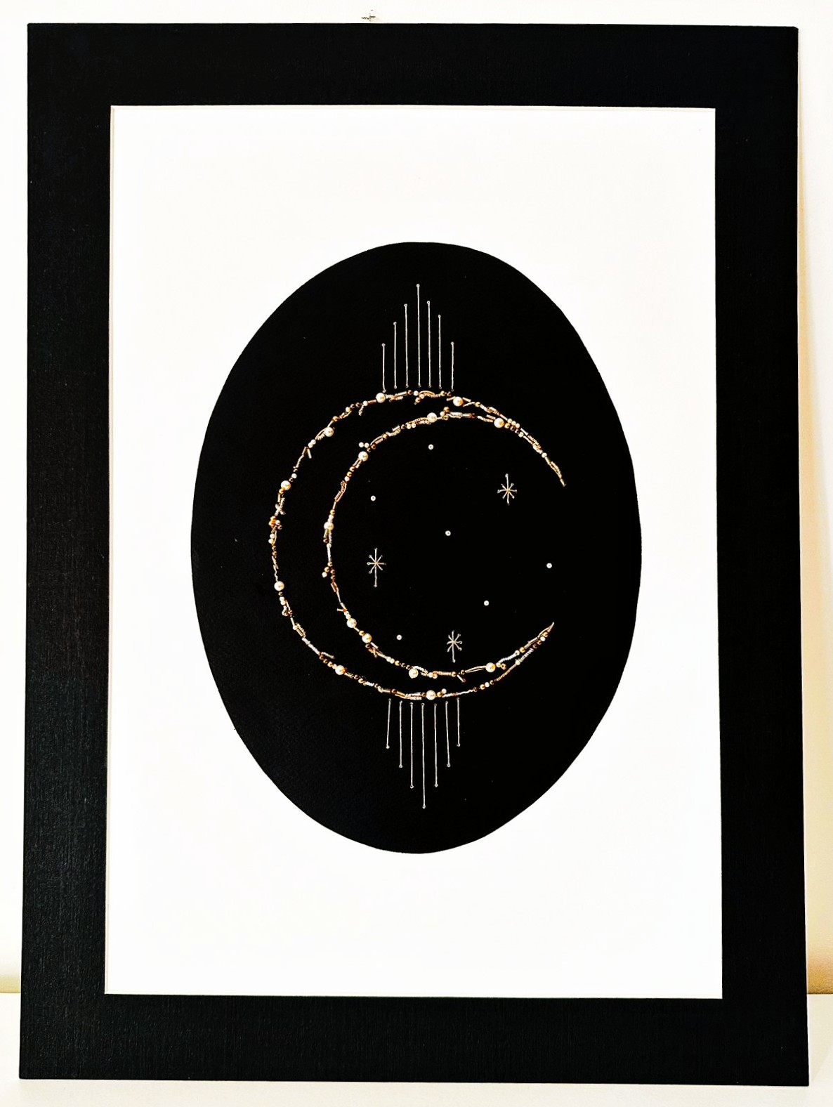 - Description:Embroidered & Printed Wall Art Metal trims + Seed Beads
