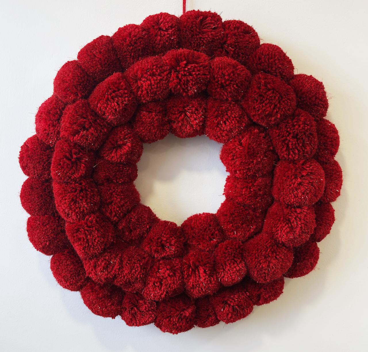 Rouge Wool Pompom Wreath